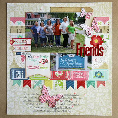 8) Cut a section of banner from "banners" paper and add alphabet stickers and attach to the tags as shown.